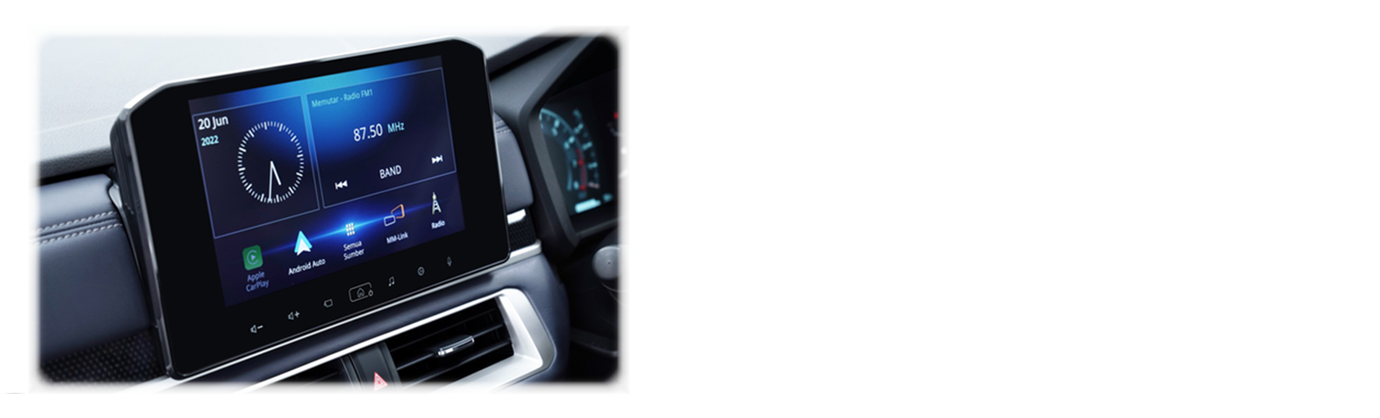 Mitsubishi New Xpander Cross memiliki fog lamp dengan teknologi LED, roof rail bawaan, dan fitur cruise control yang mendukung stabilitas kecepatan mengemudi, layar 7 inch dengan konektivitas smartphone yang sudah touch screen, hingga adanya rear view camera.